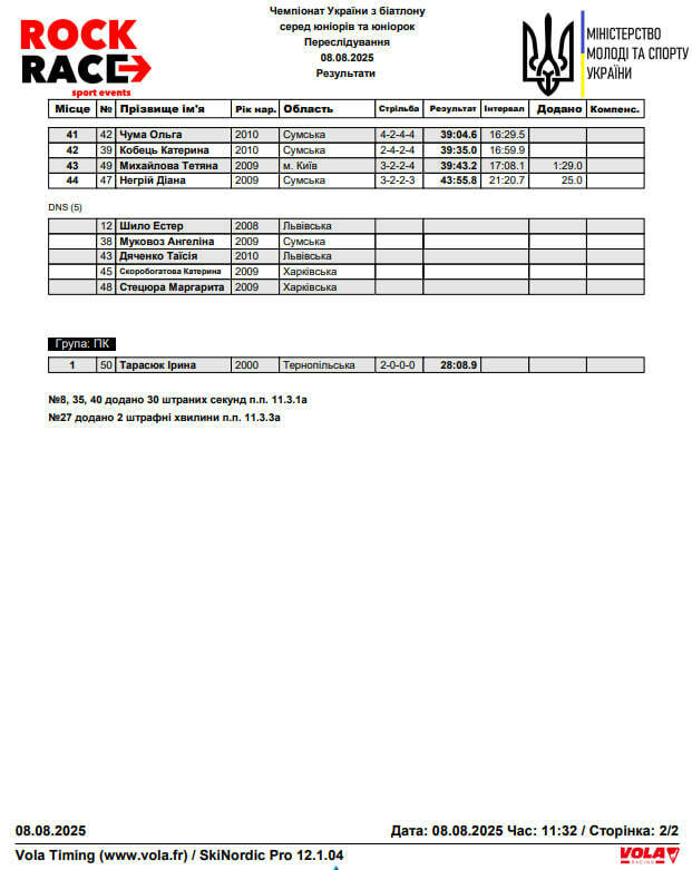 - 2. Поліна Пуцко (0+1+0+2) +1:08.9