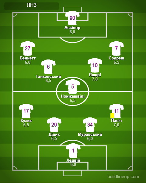 ЛНЗ (заміни): Рябов – 5,5, Проспер – 6,0, Кравчук