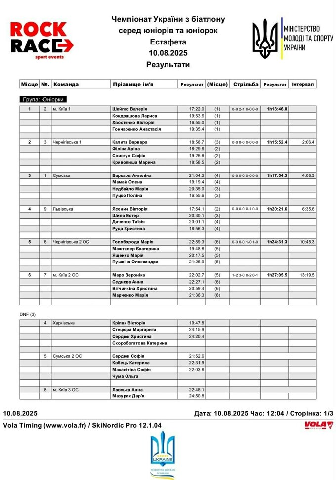 У неділю, 10 серпня, на чемпіонаті України з біатлону серед юніорів та юніорок було проведено командне змагання у форматі естафет.