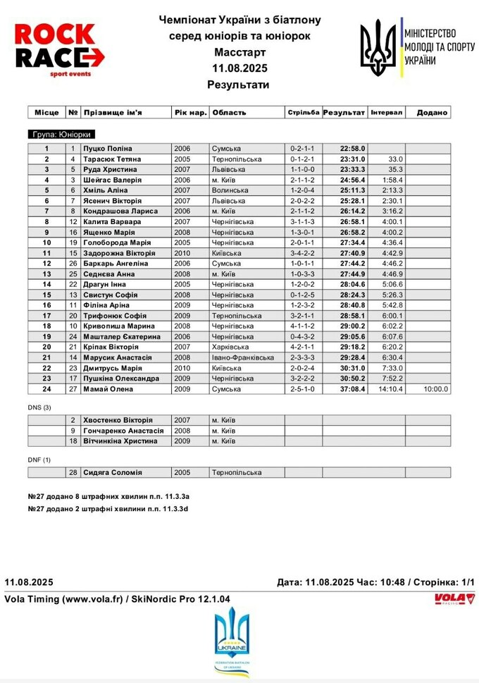 - 1. Поліна Пуцко (0+2+1+1) 22:58.0