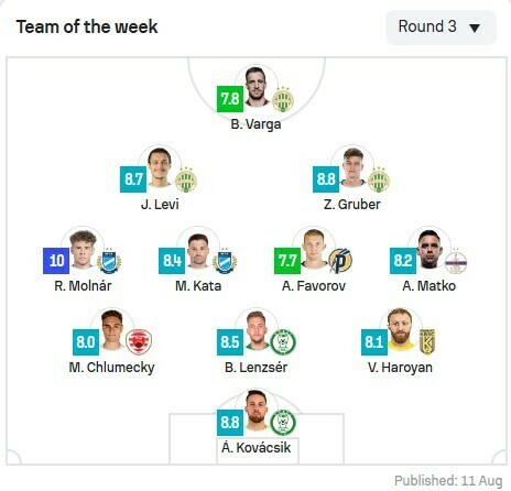 Символічна збірна 3-го туру чемпіонату Угорщини (SofaScore)