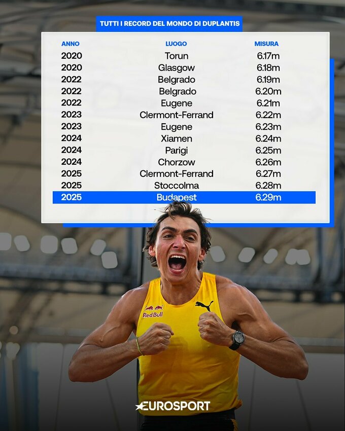 Новий рекордний результат становить 6,29 метри. Цю висоту Арман подолав з другої спроби,