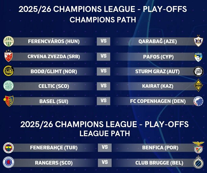 14 команд у 4-му раунді ЛЧ розіграють 7 путівок до основного етапу