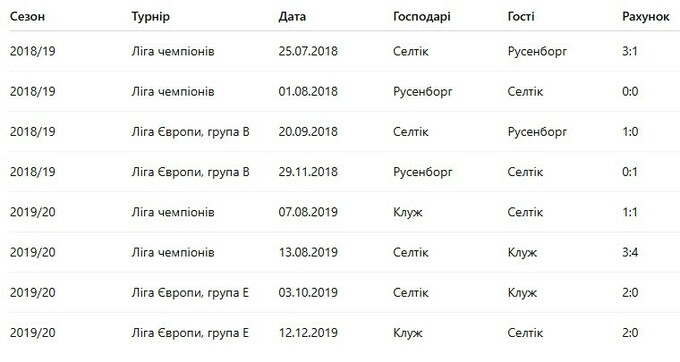 Селтик у двох випадках грав із тим же суперником у різних єврокубках за сезон