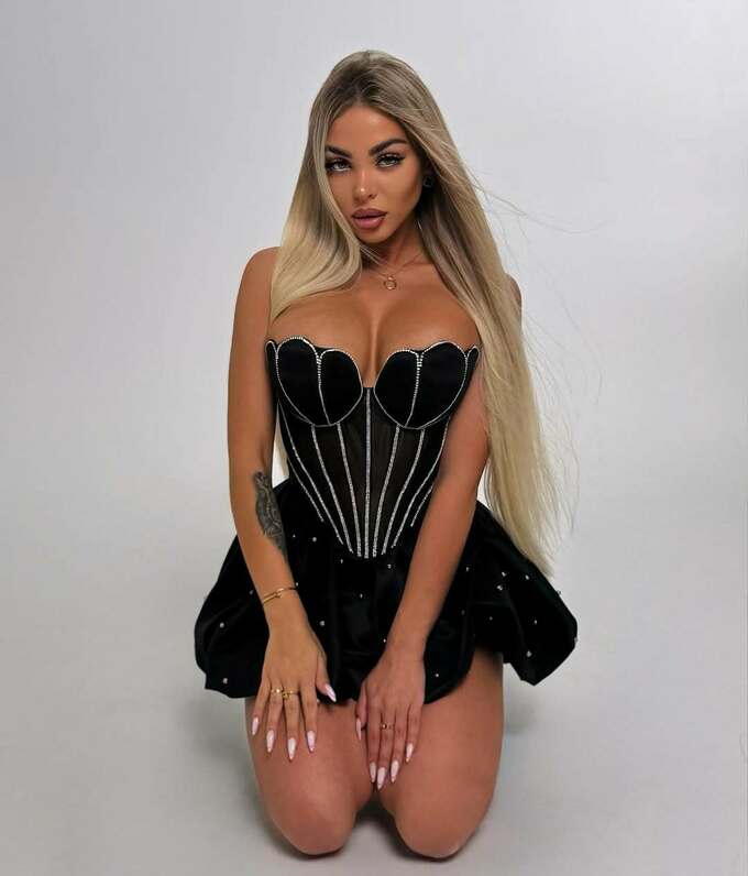 На знімку вона в чорному топі з глибоким декольте та виразним макіяжем.