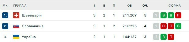 Українська команда виступає у групі зі Швейцарією та Словаччиною. У наступний етап вийдуть дві найкращі команди.