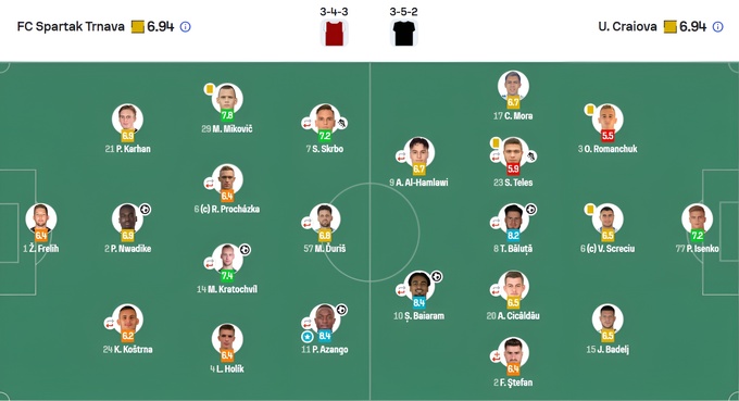 Оцінки матчу «Спартак» Трнава – «Університатя» Крайова від SofaScore