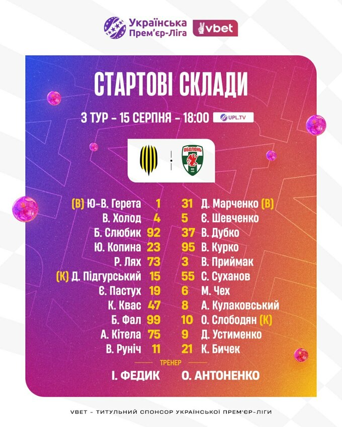 Перший матч нового туру. Склади на гру УПЛ