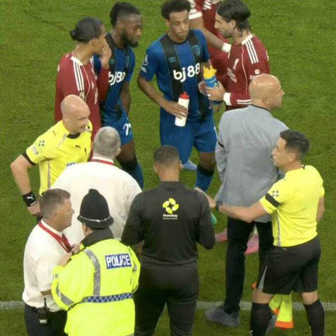 Referee Anthony Taylor halted Liverpool’s season opener after Bournemouth’s Antoine Semenyo reported an alleged racist remark from a spectator in a wheelchair.