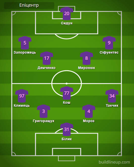 «Епіцентр»: Білик – Климець, Григоращук, Кош (Янаков, 46), Мороз, Танчик (В. Кристін, 64) – Запорожець (Беженар, 46), Демченко (Себеріо, 72), Миронюк, Сіфуентес – Сидун (Бендера, 56).