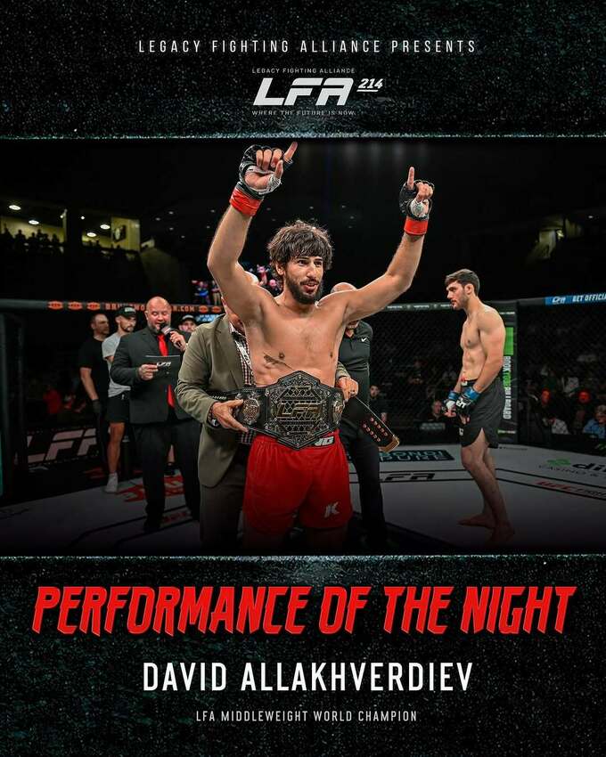 23-річний українець Давид Аллахвердієв (7–0) завоював вакантний титул чемпіона LFA у середній вазі на турнірі зі змішаних єдиноборств Legacy Fighting Alliance 214, який пройшов у Південній Дакоті (США).