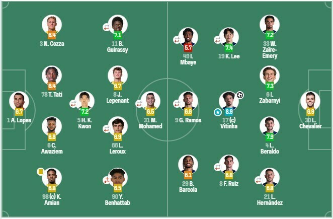 Вітінья отримав найвищу оцінку в матчі – 8.9
