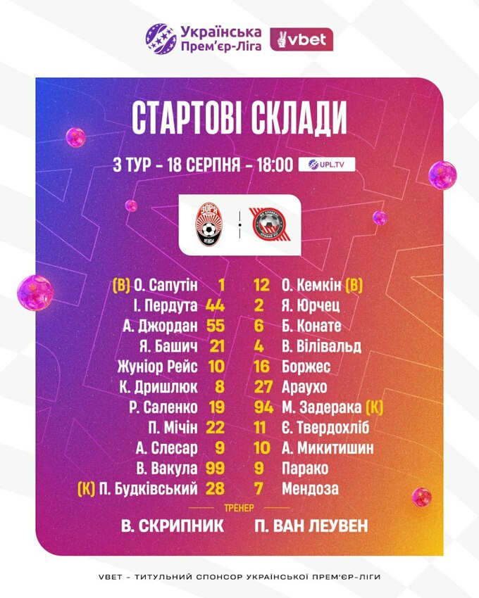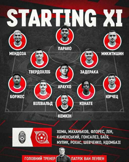 Запасні: Турбаєвський, Косівський, Малиш, Янич, Ескінья, Вантух, Попара, Головкін, Кораблін.
