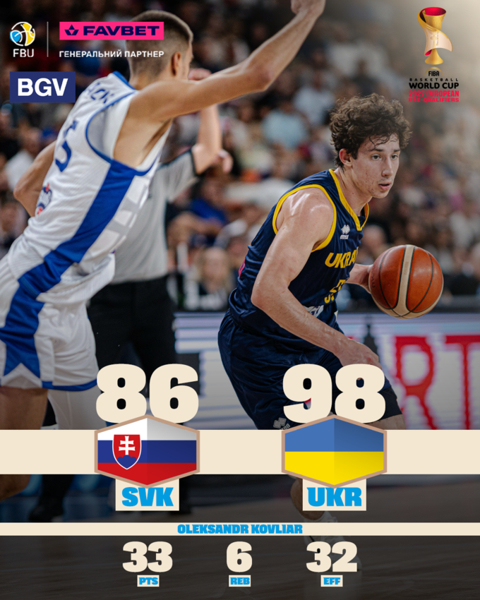 - Словаччина – Україна – 86:98 (20:17, 20:32, 27:20, 19:29)