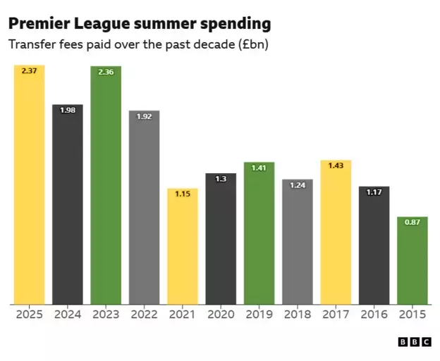 Клуби елітного дивізіону чемпіонату Англії за 11 днів до завершення трансферного вікна витратили на нових гравців 2,37 мільярда фунтів.