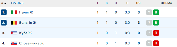 Бельгія – Куба – 3:0 (25:23, 25:14, 25:11)