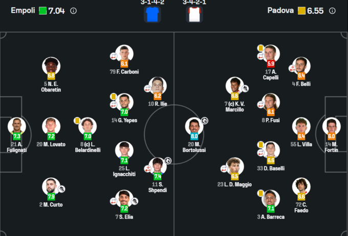 Кращим гравцем матчу був визнаний український нападник «Емполі» Богдан Попов. Він вийшов на поле з лави запасних на 28-й хвилині і оформив переможний дубль. Статистичний портал SofaScore оцінив гру форварда в 9,4 бали.