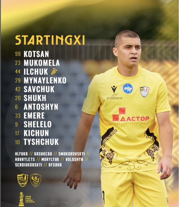 Ужгород: Коцан, Мукомела, Ільчук, Минайленко, Савчук, Шух, Антошин, Емере, Шелело, Кічун, Тищук