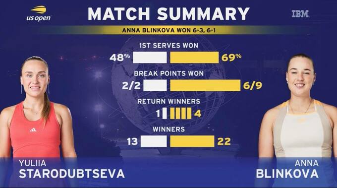 Юлія у двох сетах без особливих шансів поступилася Анні Блінковій