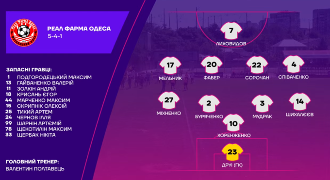 «Реал Фарма» сезон у Другій лізі розпочала з нічиєї 1:1 у матчі з ФК «Ужгород». Однак потім були поразки від «Буковини-2» (0:2) і «Скали1911» (0:6). У турнірній таблиці групи А Другої ліги «Реал Фарма» йде на останньому місці.