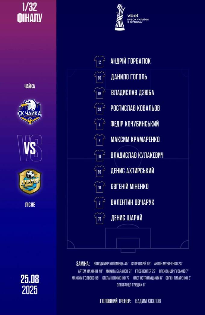 Оприлюднено стартові склади на матч Чайка – Лісне