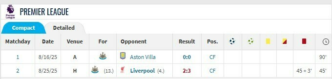 Ентоні Гордон за цей період у Прем'єр-лізі зробив лише одну результативну передачу