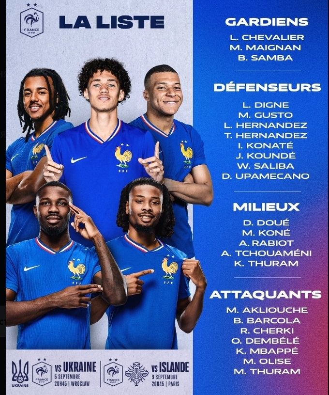 Дембеле, Мбаппе, Тюрами. Заявка збірної Франції на матч проти України