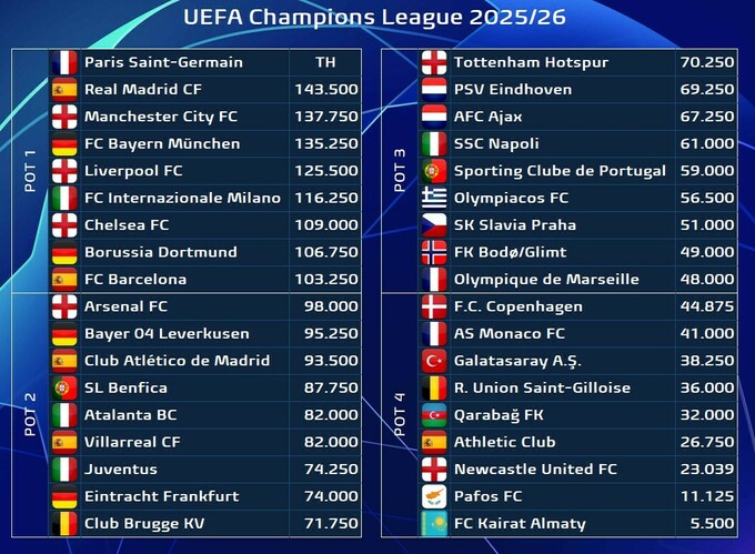 Визначено усіх 36 учасників основного раунду Ліги чемпіонів. Склад кошиків