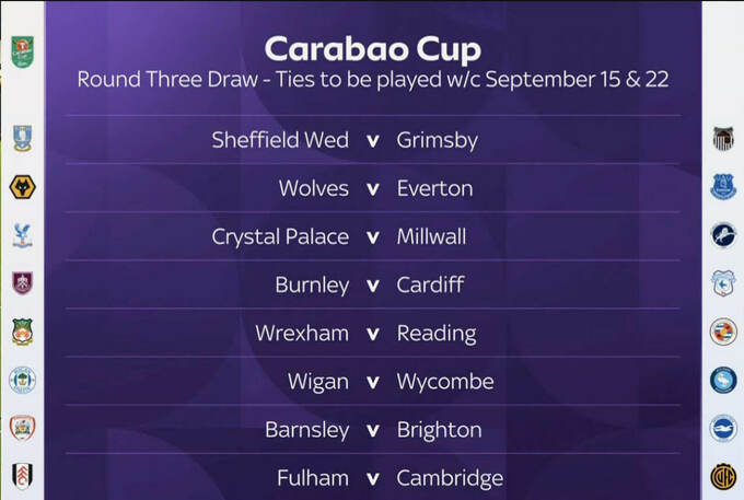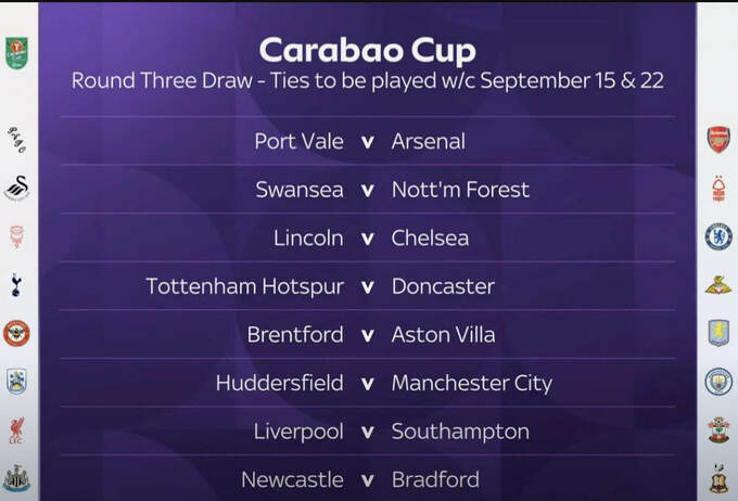 Матчі 1/16 фіналу Кубка ліги Англії пройдуть у другій половині вересня протягом двох тижнів.