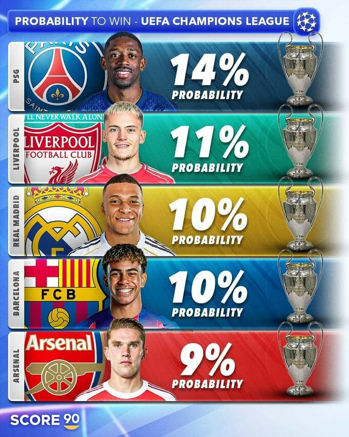 Аналітичне видання Score 90 опублікувало список головних претендентів на перемогу в турнірі. Головним фаворитом на трофей вважається французький ПСЖ, який є чинним володарем Ліги чемпіонів.