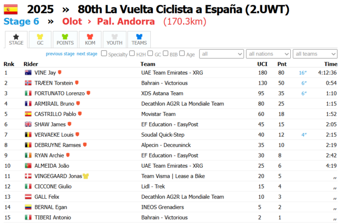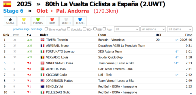 Вуельта Іспанії 2025 року. 28 серпня, шостий етап. Олот – Паль (Андорра) (170,3 кілометри)