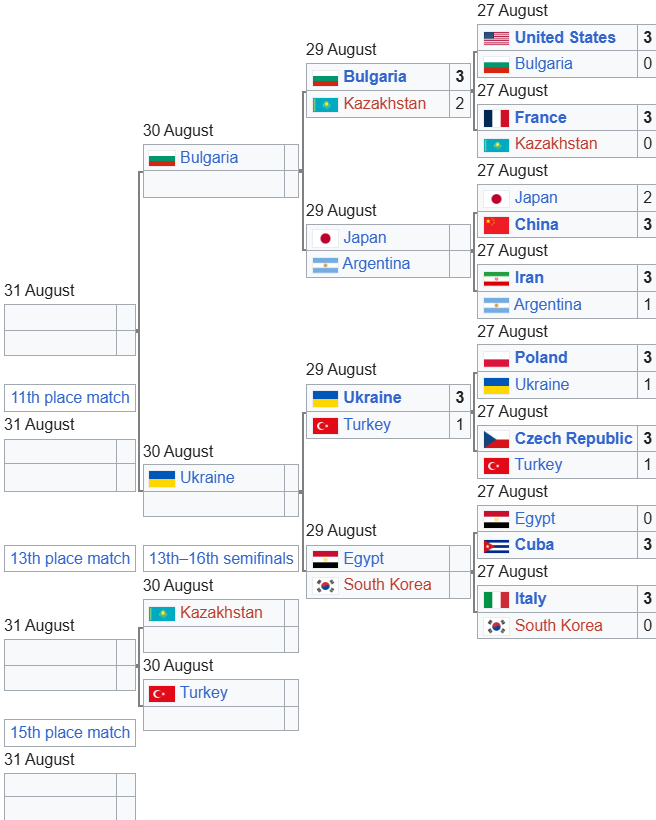 У наступному раунді змагань Болгарія зустрінеться з переможцем пари Південна Корея – Єгипет. Казахстан натомість продовжить боротьбу у матчах за визначення 16–13 місця.