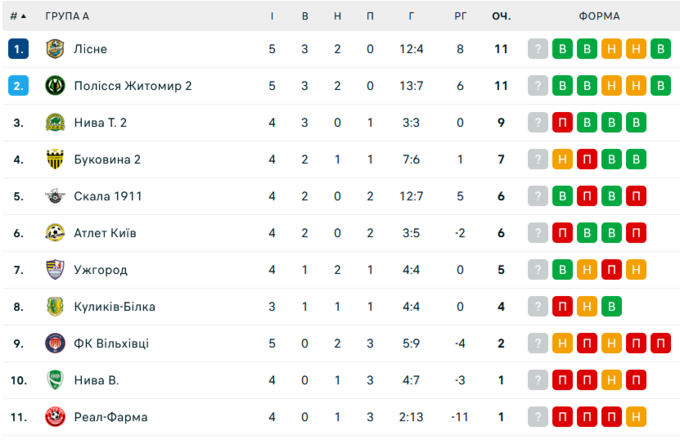 Друга ліга. Перемога ФК Лісне, нічия Буковини-2. Результати 5-го туру