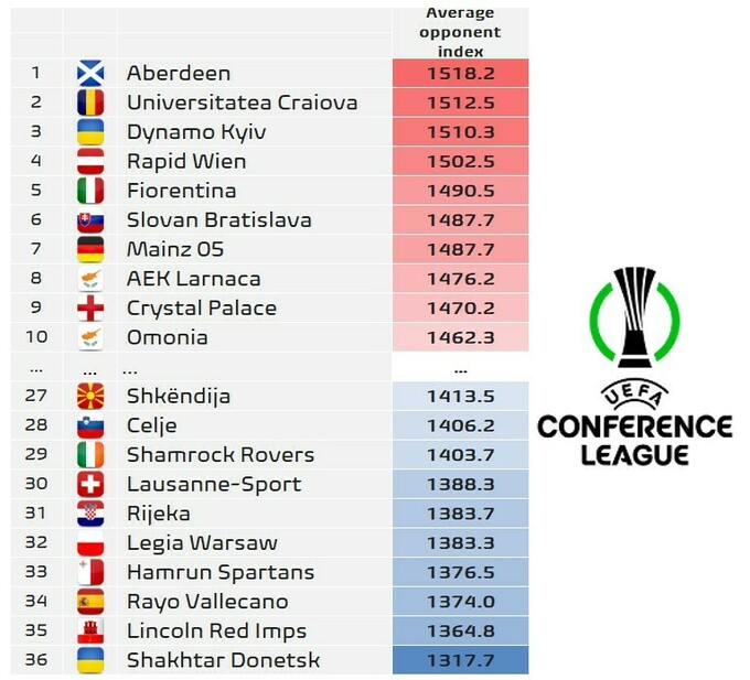 Київське Динамо мало нефарт під час жеребкування. За середнім рейтингом суперників, які команда отримала у шести корзинах, біло-сині мають найскладніший шлях серед усіх команд: середнє значення коефіцієнта суперників – 21,0.