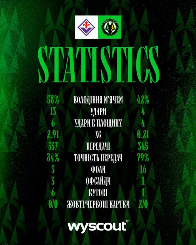 Перевершили xG у 10 разів. Статистика матчу Фіорентина – Полісся