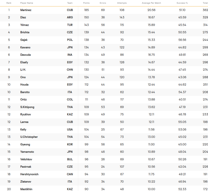 Найкращий серед українців – Олександр Бойко, який посів 21-ме місце з 88 результативними діями в атаці.