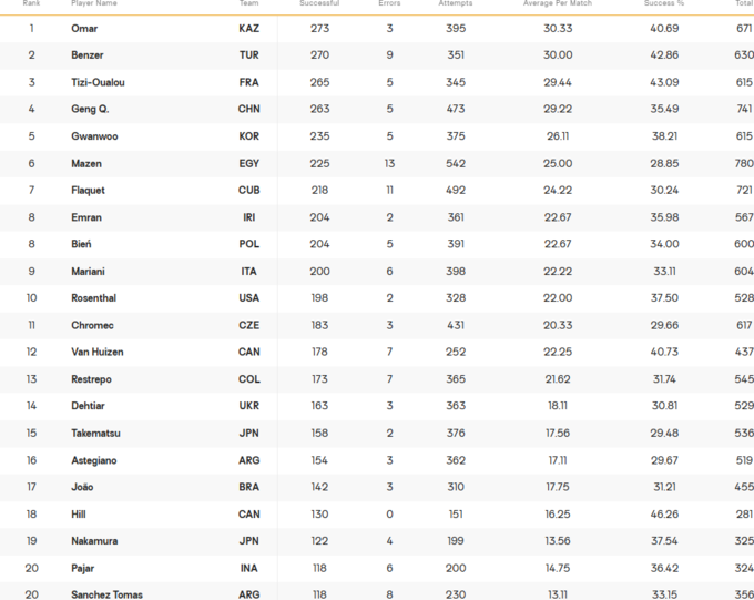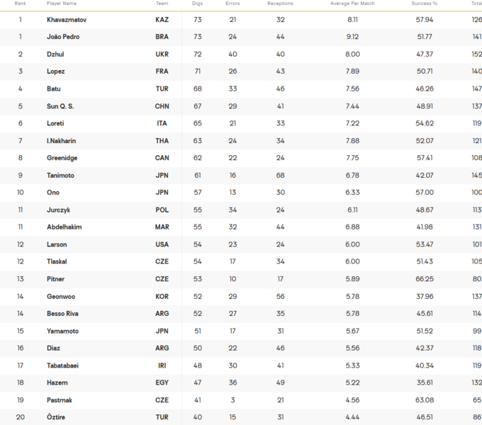 Найкращі гравці на подачі на чемпіонаті світу U21 2025:
