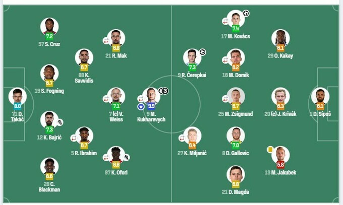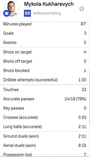 За свою феноменальну гру Микола Кухаревич отримав неймовірну оцінку 9.9 від веб-порталу SofaScore.