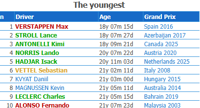 - п’ятим наймолодшим гонщиком в історії Формули-1, який піднявся на подіум