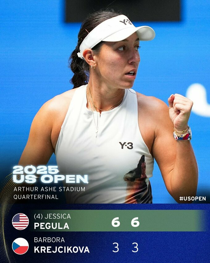 Американська тенісистка і четверта ракетка світу Джессіка Пегула пробилася до півфіналу Відкритого чемпіонату США 2025.