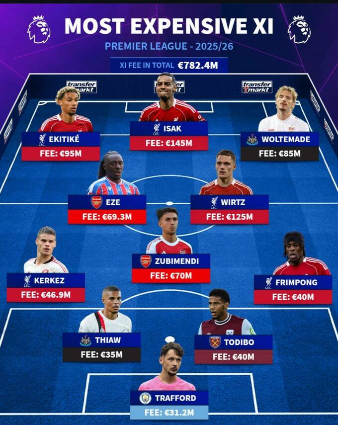 - Нападники: Уго Екітіке (Лівепуль) – €95 млн, Александер Ісак (Ліверпуль) – €145 млн, Нік Вольтемаде (Ньюкасл) – €85 млн