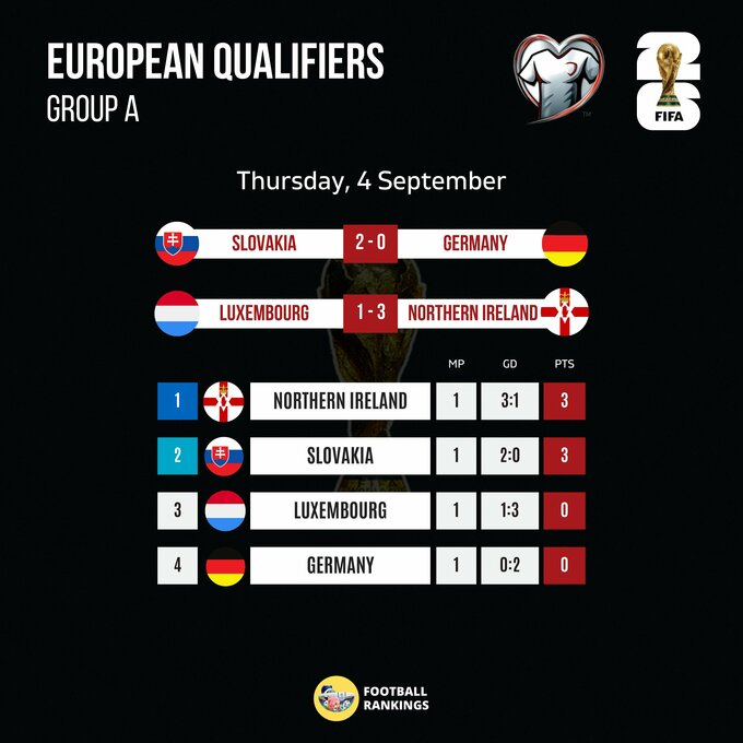 Збірна Німеччини на виїзді зазнала сенсаційної поразки від команди Словаччини (0:2).