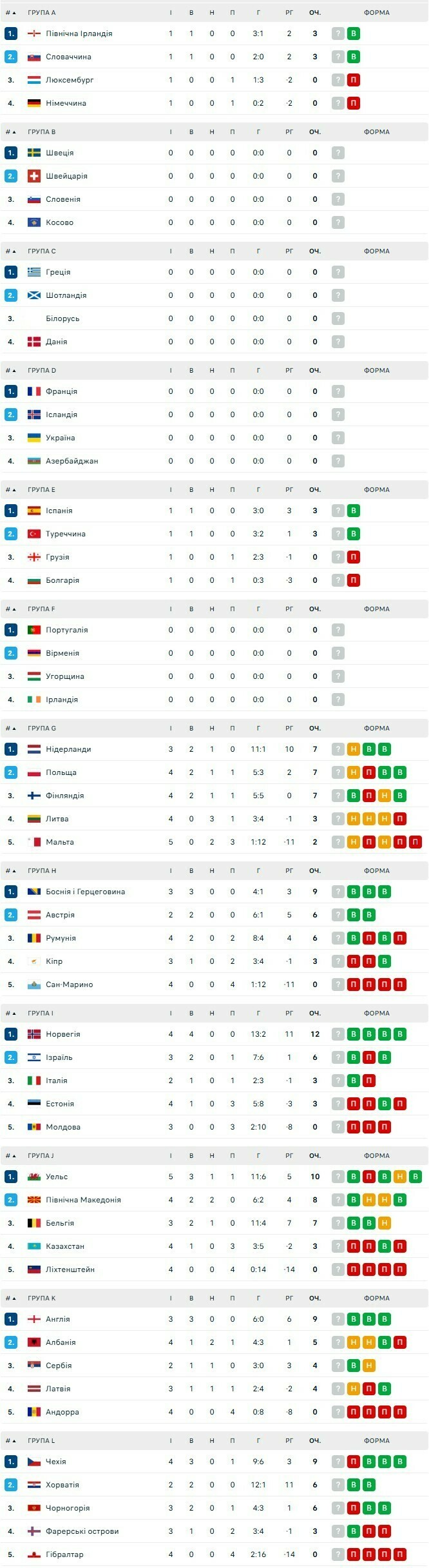 Як виглядають турнірні таблиці. Підсумки ігрового дня кваліфікації ЧС-2026