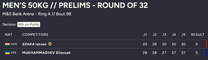 Суперник українця – Іштван Шака – повністю контролював ситуацію в рингу, завдавав більше ударів, краще рухався на ногах. За підсумками трьох раундів всі п'ять суддів зафіксували впевнену перемогу боксера з Угорщини.