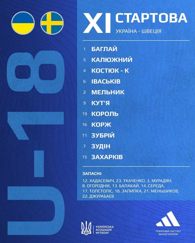 17:00. Україна U-18 – Швеція U-18 – 2:0