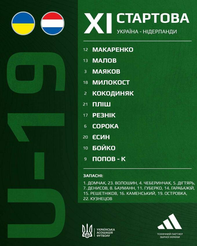 Названо стартовий склад України U-19 на гру проти Нідерландів U-19