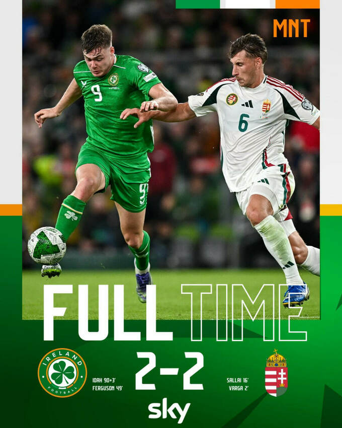 Голами за гостей відзначилися Барнабаш Варга і Роланд Шаллаї, а у господарів забили Еван Фергюсон і Адам Айда. Айда вирвав нічию для ірландців на 90+3-й хвилині.