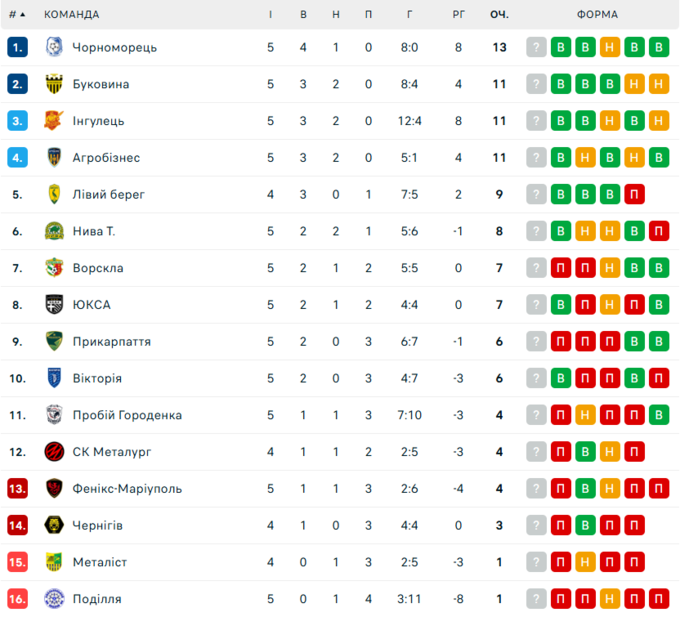 Завдяки цій перемозі «Чорноморець» вийшов на перше місце турнірної таблиці Першої ліги. «Буковина», «Інгулець» і «Агробізнес» відстають на два очки.