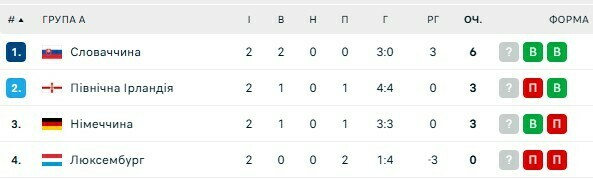 В іншому матчі Словаччина насилу вирвала перемогу в Люксембурга (1:0) та зберегла лідерство у групі A (6 очок).