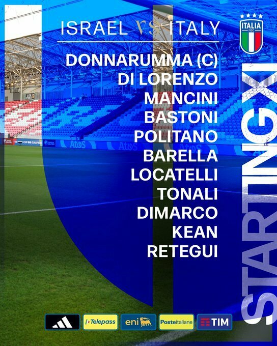 Італія: Доннарумма – Дімарко (Камб’язо, 78), Бастоні, Манчіні, Ді Лоренцо – Барелла (Фраттезі, 68), Локателлі, Тоналі, Політано (Орсоліні, 68) – Кін (Распадорі, 78), Ретегі (Мальдіні, 87).